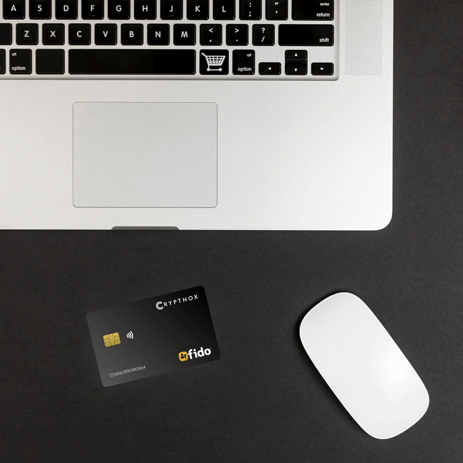 Cryptnox FIDO cards can be natively used as a Security Key with iOS without additional software or drivers (a minimum of two cards is required). On Microsoft Windows, Cryptnox FIDO card authentication is available with Microsoft 365 Business Premium and a card reader.