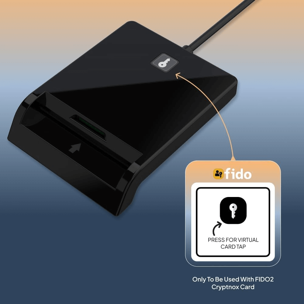 The Click-to-Tap button on this reader simulates that tap when using any Cryptnox FIDO2 card.